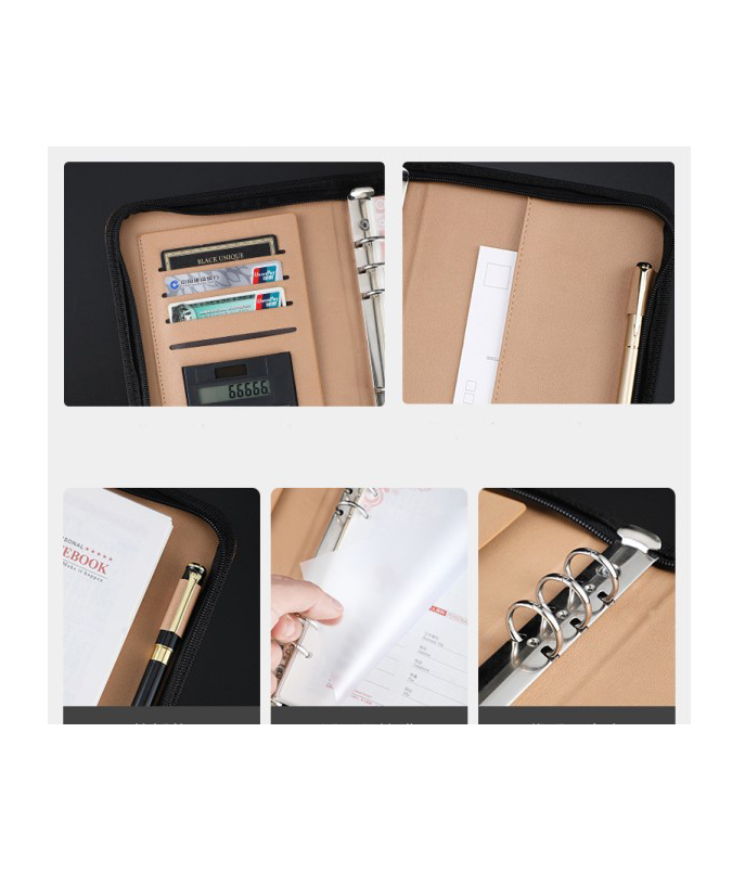 Artificial leather zipper notebook with calculator